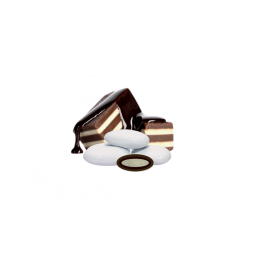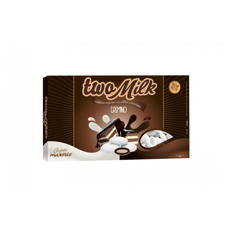 Un’anima di cioccolato bianco avvolta da uno strato di cioccolato al latte, da uno strato di cioccolato fondente e ricoperta da un sottile strato di zucchero.