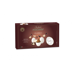 Mandorla tostata ricoperta da cioccolato fondente e bianco e da un sottile strato di zucchero.