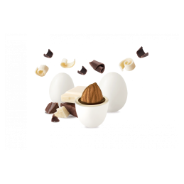 Cioccolato bianco (40%) (zucchero, latte intero in polvere, burro di cacao. Emulsionante: lecitina di soia. Aroma naturale di vaniglia), zucchero, cioccolato fondente (19%) (zucchero, pasta di cacao, burro di cacao. Emulsionante: lecitina di soia, . Aroma naturale di vaniglia), mandorle tostate (18%), maltodestrina, amido di riso. Colorante: 170. Agenti di rivestimento: cera carnauba (E903), cera d'api (E901).