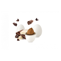 Mandorla tostata ricoperta da cioccolato fondente, bianco e al latte e da un sottile strato di zucchero.